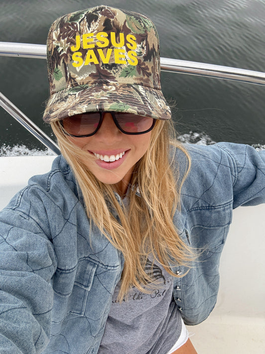 Loves Jesus & America Too Vintage Trucker Hat - Brown/Ivory