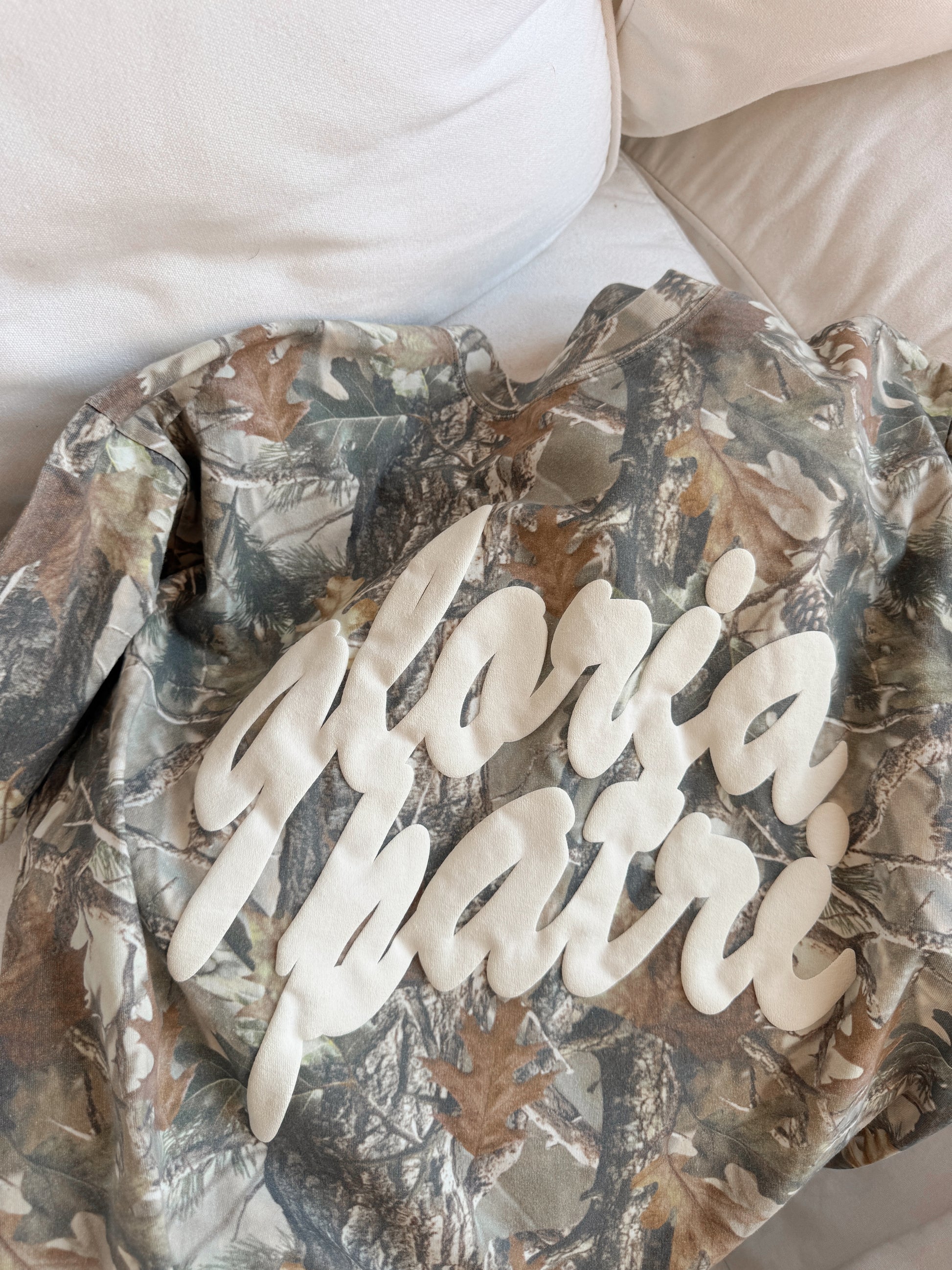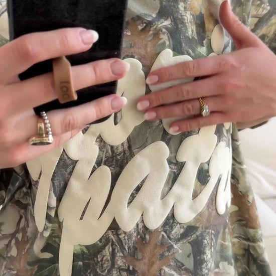 A premium, luxury tee from Cotton Collective in their faded wash, camo print drop-shoulder, boxy heavyweight tee with ivory screenprinted puff print! Unisex, slightly oversized boxy tee like the Urban Outfitters graphic tees. Great option for the guys too!
